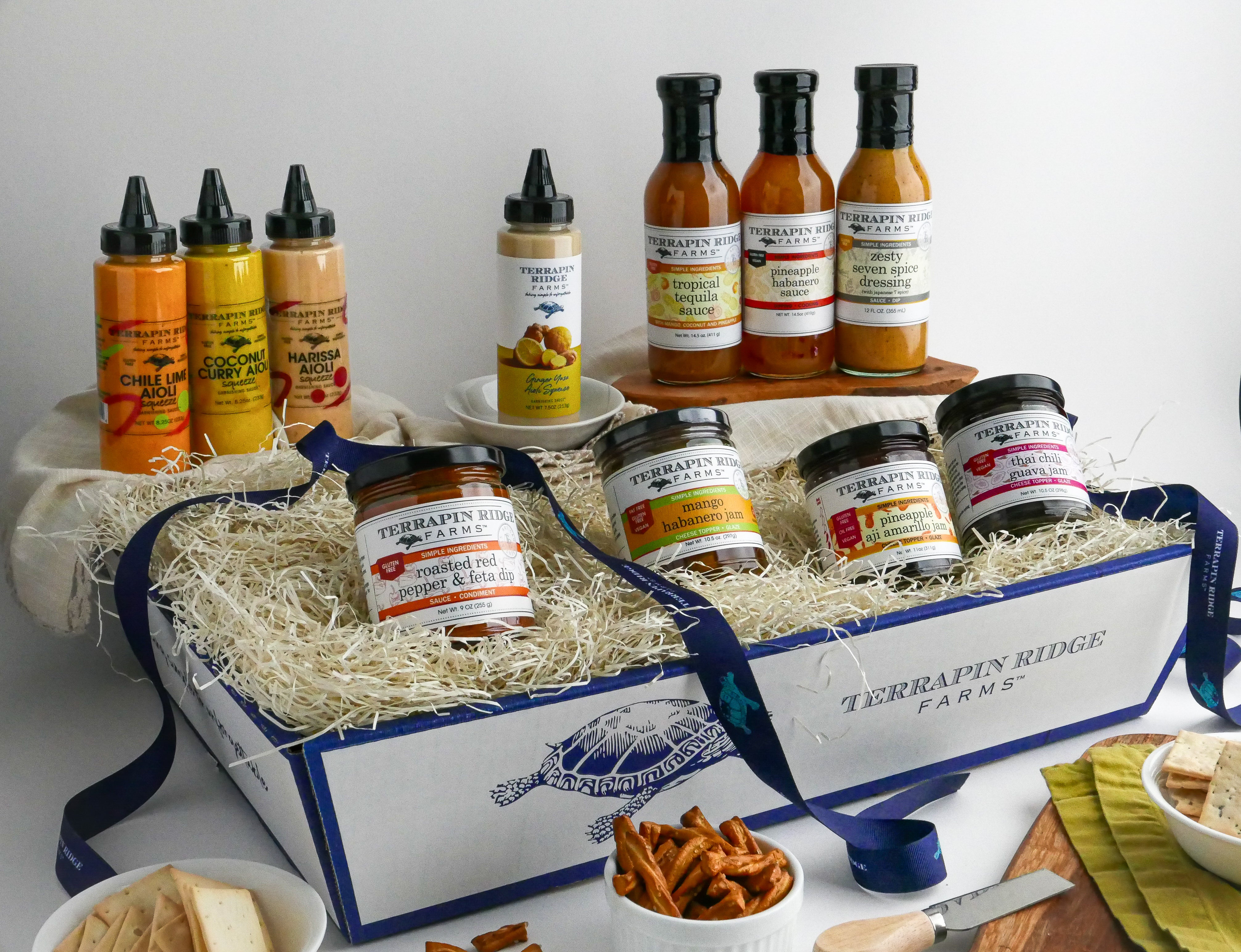 Take your taste buds on a global adventure! Our Trip Around the World gift set showcases flavor profiles inspired from around the world. Products include: Thai Chili Guava Jam, Harissa Aioli, Coconut Curry Squeeze, Ginger Yuzu Aioli Squeeze, Zesty Seven Spice Dressing, Roasted Red Pepper & Feta Dip, Chile Lime Aioli, Pineapple Aji Amarillo Jam, Mango Habanero Jam, Pineapple Habanero Sauce and Tropical Tequilla Sauce.