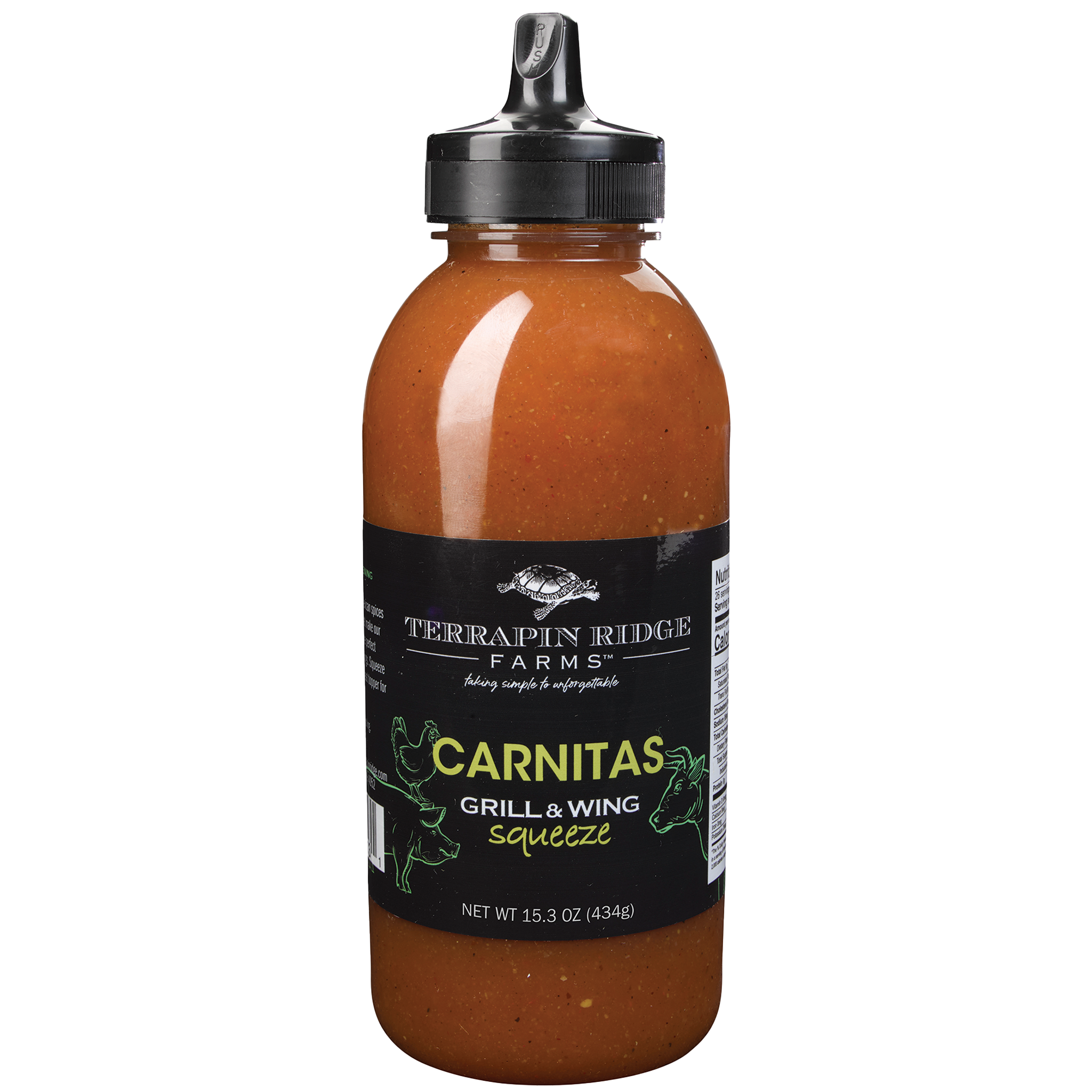 Chile de Arbol, orange juice and Mexican spices are just a few of the ingredients that make our Carnitas Grill & Wing Squeeze the perfect sauce for pulled pork or chicken wings. Squeeze on tacos, tostados, and burritos. Great topper for a black bean and rice bowl. Gluten Free. Oil Free. Plant Based. Vegan.