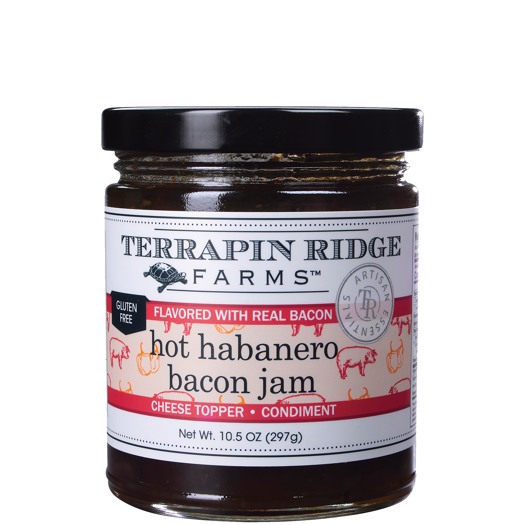 Spicy habaneros, roasted red bell peppers and real bacon combine to create an addictive jam. For a quick appetizer, pour over cream cheese and serve with crackers. An excellent burger topper and condiment for sandwiches, wraps and paninis. The perfect accompaniment for cheese boards and charcuterie. Gluten Free. Oil Free.