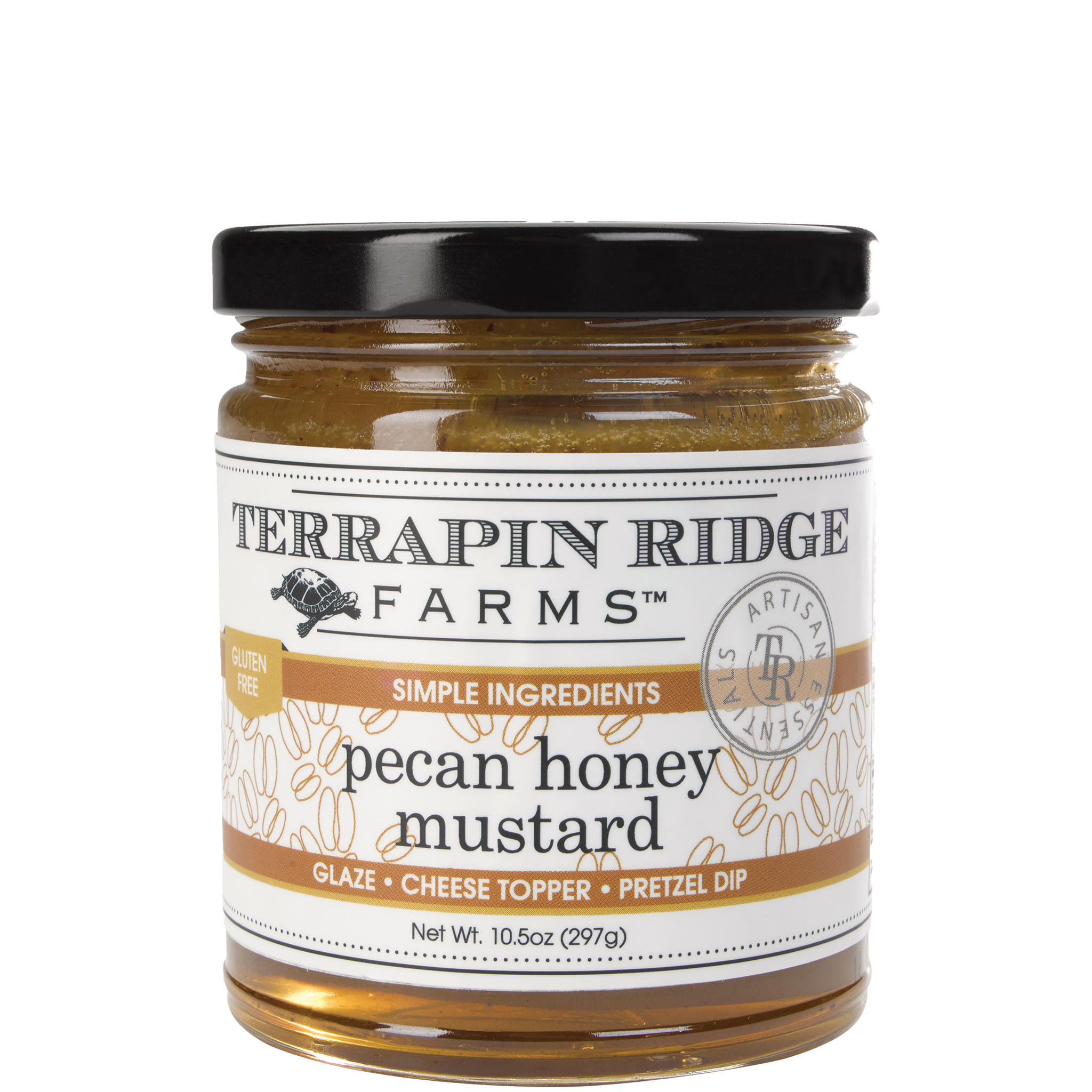 The rich flavor of pecans give unique flavor to our sweet and tangy honey mustard. The perfect accompaniment for cheeses and to glaze meats and vegetables. Makes an incredible baked brie. Use as a sauce for pork tenderloin or roast turkey. Drizzle on squash, carrots and sweet potatoes. Also, wonderful as a pretzel dip. Gluten Free. Low Sugar.