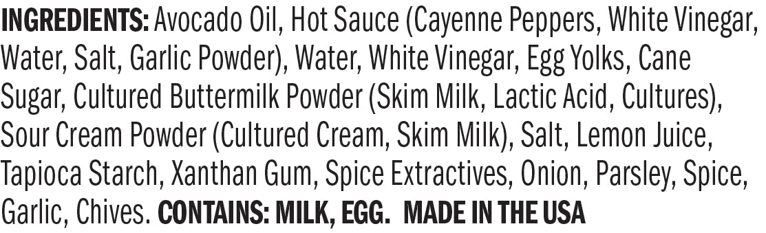 Cool, tangy buttermilk ranch and zesty, spicy buffalo sauce combine to make a well-balanced taste sensation! Delicious on wraps, chicken sandwiches or burgers. Great dipping sauce for fried shrimp, chicken tenders or onion rings.