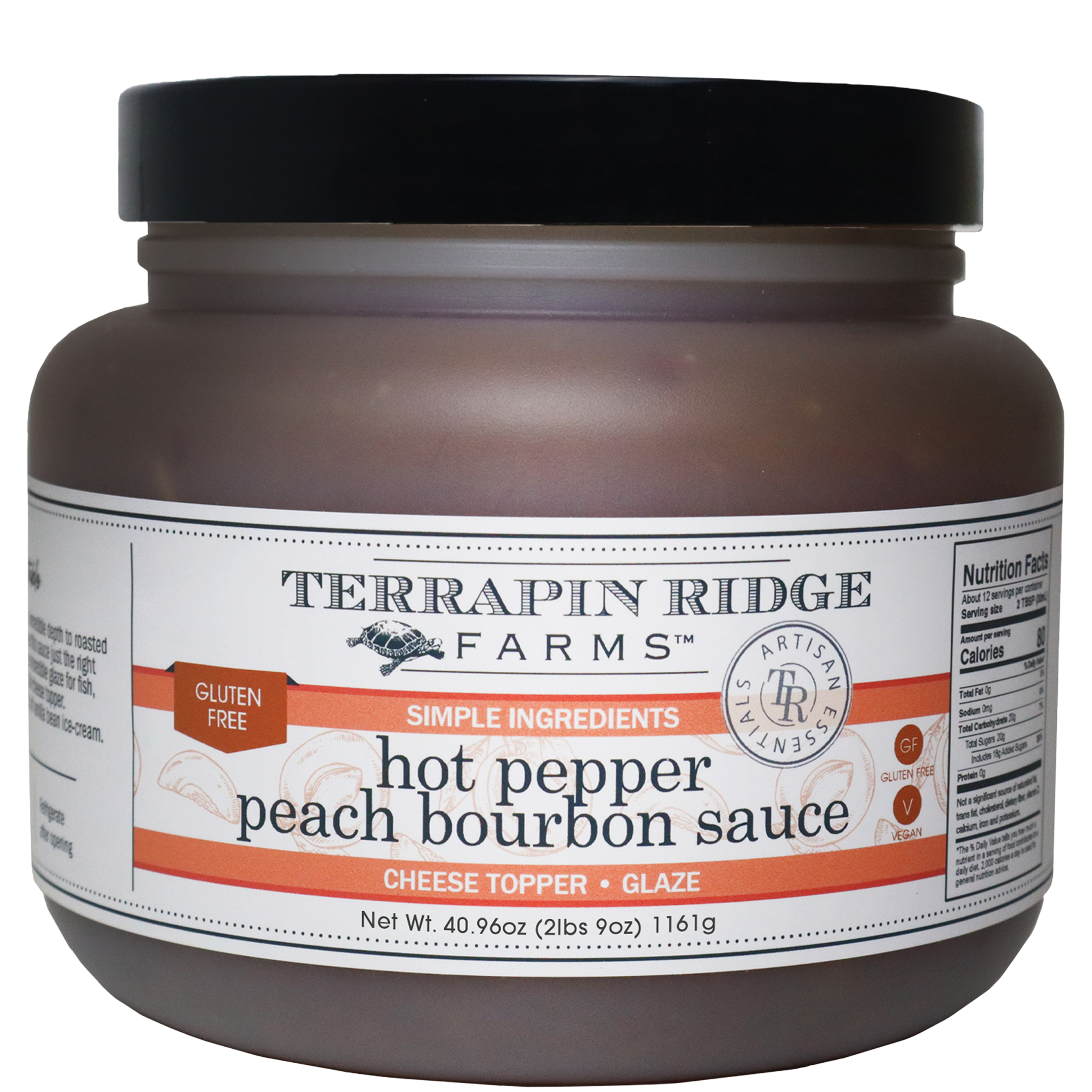 The rich flavor of bourbon adds incredible depth to roasted peaches, while red pepper gives this sauce just the right amount of heat. The result is an incredible glaze for fish, chicken or beef and a delectable cheese topper. Heat this sauce and use on top of vanilla bean ice-cream. Gluten Free. Oil Free. Vegan.