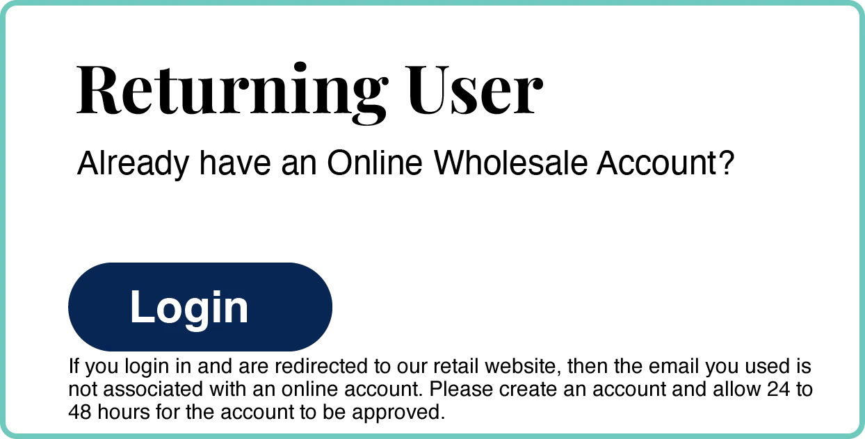 - Please allow 24 to 48 hours for your application to be approved. Once your account is approved, you will receive an email notification and can log into the wholesale site.